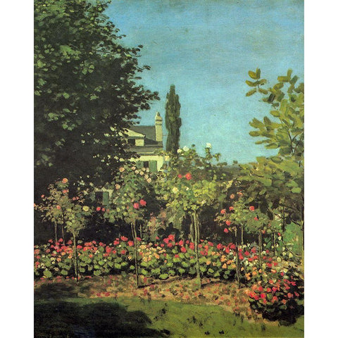 Garden in flower 1867 White Modern Wood Framed Art Print by Monet, Claude