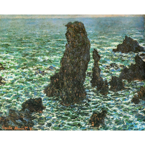 Pyramides at Port-Coton 1886 White Modern Wood Framed Art Print by Monet, Claude