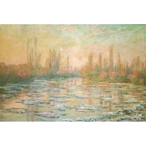 The Ice-floes 1893 White Modern Wood Framed Art Print by Monet, Claude